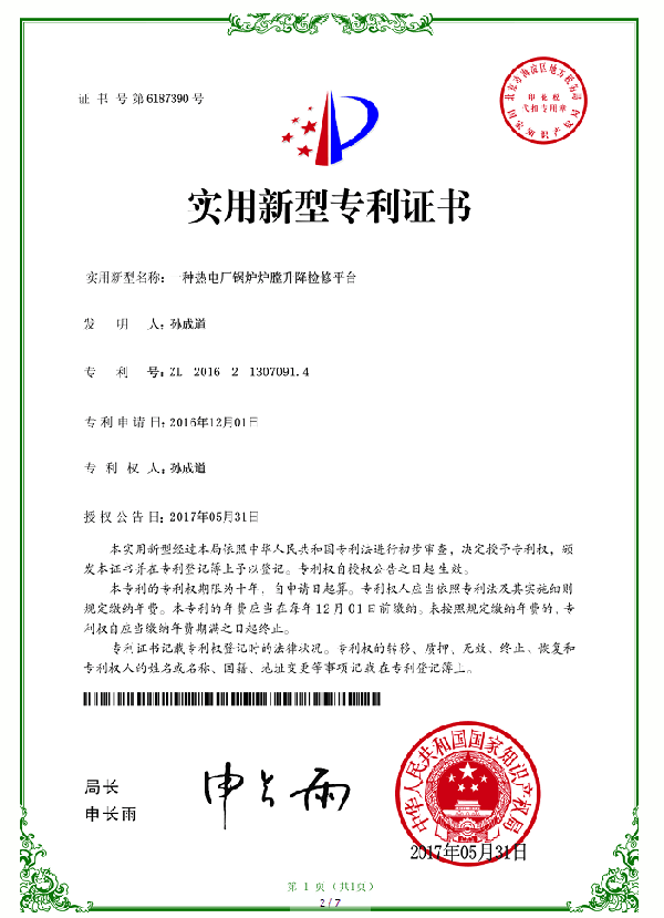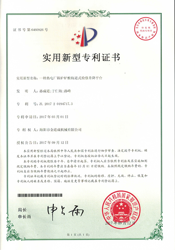 公司成立于2008年,年產(chǎn)“鍋爐爐膛檢修升降平臺(tái)”100余臺(tái)套的能力。自主研發(fā)的下支撐折疊式GJPT系列熱電廠鍋爐爐膛檢修升降平臺(tái),于2016年獲得行業(yè)首項(xiàng)國家專利保護(hù);經(jīng)過數(shù)年的發(fā)展,為各種型號(hào)煤粉鍋爐和循環(huán)流化床鍋爐的爐膛檢修,提供出一系列門類齊全的檢修平臺(tái)設(shè)計(jì)方案,先后為國家能源集團(tuán)、華潤電力、大唐集團(tuán)、晉煤集團(tuán)、益海嘉里集團(tuán)公司、嘉吉糧油公司、中糧集團(tuán)公司、山東時(shí)風(fēng)集團(tuán)、阜豐生物科技、晉煤集團(tuán)等400余家公司設(shè)計(jì)、定制了鍋爐爐膛檢修升降平臺(tái)。